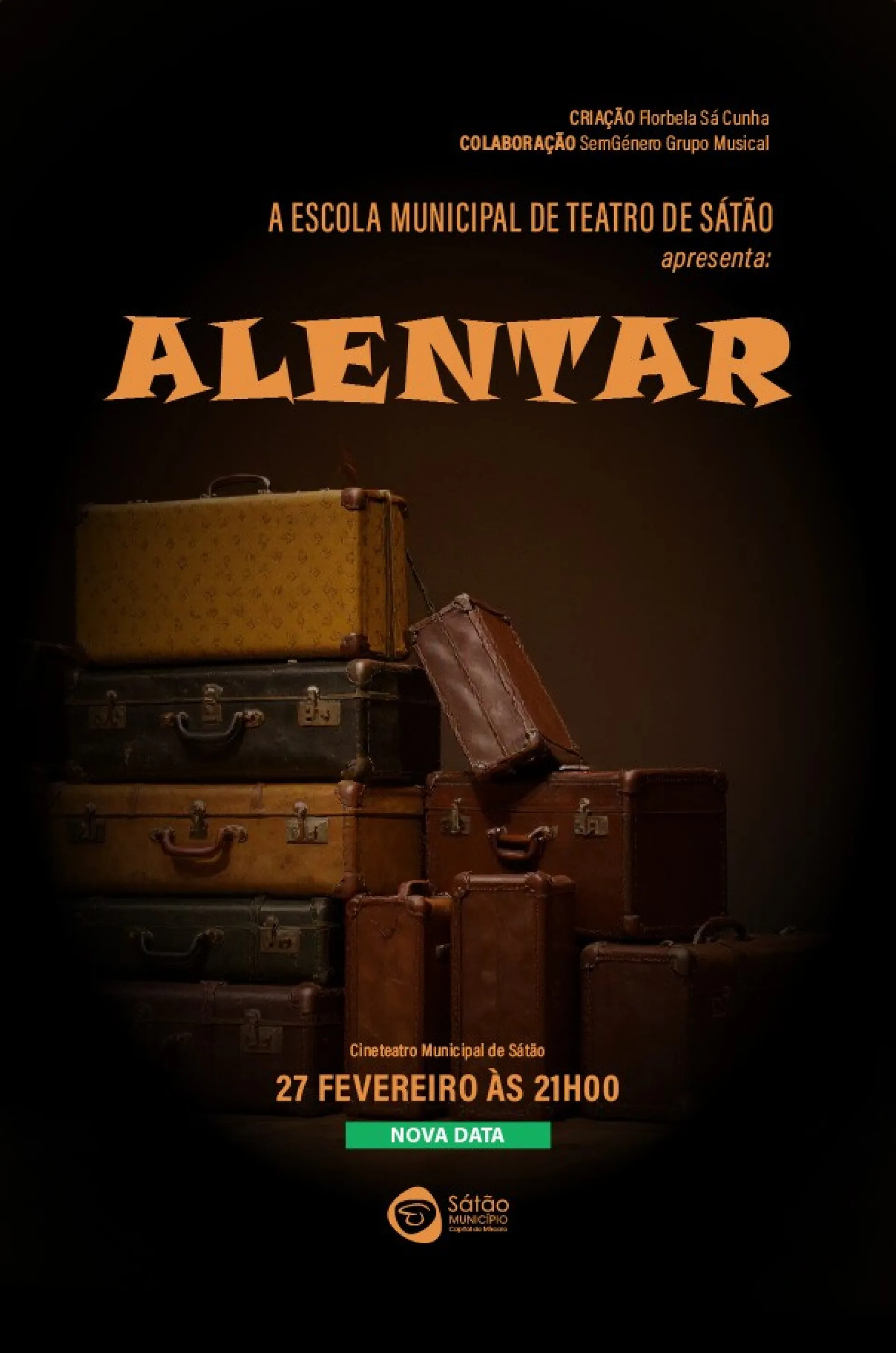 O grupo jovens/ adultos da Escola Municipal de Teatro de Sátão vai apresentar no dia 27 de fevereiro de 2026, sexta-feira, às 21h00, no Cineteatro Municipal de Sátão, a peça de teatro “Alentar”, com encenação de Florbela Sá Cunha e com a colaboração do grupo musical SemGénero.