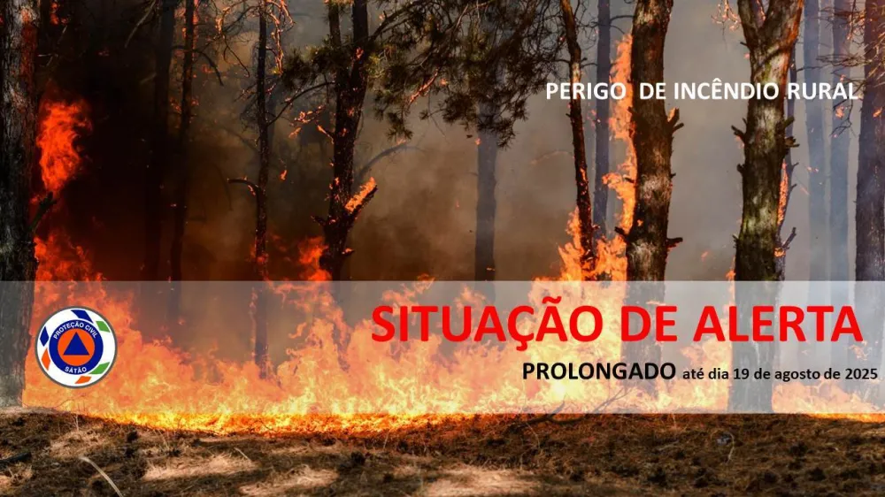 Devido ao nível de risco de incêndio rural em todo o território continental, o Governo determinou o PROLONGAMENTO da SITUAÇÃO DE ALERTA até às 23h59 de quarta-feira, dia 19 de agosto de 2025. Neste período mantêm-se as seguintes medidas de caráter excecional: PROIBIÇÃO do acesso, circulação e permanência no interior dos espaços florestais previamente definidos nos Planos Municipais de Defesa da Floresta Contra Incêndios, bem como nos caminhos florestais, caminhos rurais e outras vias que os atravessem; PROIBIÇÃO da realização de queimadas e queimas de sobrantes de exploração; PROIBIÇÃO de realização de trabalhos nos espaços florestais e outros espaços rurais com recurso a qualquer tipo de maquinaria; PROIBIÇÃO total da utilização de fogo-de-artifício ou outros artefactos pirotécnicos, independentemente da sua forma de combustão. A proibição não abrange: a) Os trabalhos associados à alimentação e abeberamento de animais, ao tratamento fitossanitário ou de fertilização, regas, podas, colheita e transporte de culturas agrícolas, desde que as mesmas sejam de carácter essencial e inadiável e se desenvolvam em zonas de regadio ou desprovidas de florestas, matas ou materiais inflamáveis, e das quais não decorra perigo de ignição; b) A extração de cortiça por métodos manuais e a extração (cresta) de mel, desde que realizada sem recurso a métodos de fumigação obtidos por material incandescente ou gerador de temperatura; c) Os trabalhos de construção civil, desde que inadiáveis e que sejam adotadas as adequadas medidas de mitigação de risco de incêndio rural; d) Os trabalhos de colheita de culturas agrícolas com a utilização de máquinas, nomeadamente ceifeiras debulhadoras, e a realização de operações de exploração florestal de corte, rechega e transporte, entre o pôr do sol e as 11h00, desde que sejam adotadas medidas de mitigação de risco de incêndio rural e comunicada a sua realização ao Serviço Municipal de Proteção Civil territorialmente competente. A Proteção Civil Municipal de Sátão apela a toda a população que respeite estas medidas preventivas e especiais de modo a mitigar o risco de incêndio!