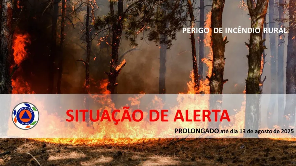 Face às previsões meteorológicas para os próximos dias, elevado risco de incêndio rural em todo o país, o Governo determinou a PRORROGAÇÃO da SITUAÇÃO DE ALERTA até às 23h59 de quarta-feira, dia 13 de agosto de 2025. Neste período mantêm-se as seguintes medidas de caráter excecional: PROIBIÇÃO do acesso, circulação e permanência no interior dos espaços florestais previamente definidos nos Planos Municipais de Defesa da Floresta Contra Incêndios, bem como nos caminhos florestais, caminhos rurais e outras vias que os atravessem; PROIBIÇÃO da realização de queimadas e queimas de sobrantes de exploração; PROIBIÇÃO de realização de trabalhos nos espaços florestais e outros espaços rurais com recurso a qualquer tipo de maquinaria; PROIBIÇÃO total da utilização de fogo-de-artifício ou outros artefactos pirotécnicos, independentemente da sua forma de combustão. A proibição não abrange: a) Os trabalhos associados à alimentação e abeberamento de animais, ao tratamento fitossanitário ou de fertilização, regas, podas, colheita e transporte de culturas agrícolas, desde que as mesmas sejam de carácter essencial e inadiável e se desenvolvam em zonas de regadio ou desprovidas de florestas, matas ou materiais inflamáveis, e das quais não decorra perigo de ignição; b) A extração de cortiça por métodos manuais e a extração (cresta) de mel, desde que realizada sem recurso a métodos de fumigação obtidos por material incandescente ou gerador de temperatura; c) Os trabalhos de construção civil, desde que inadiáveis e que sejam adotadas as adequadas medidas de mitigação de risco de incêndio rural; d) Os trabalhos de colheita de culturas agrícolas com a utilização de máquinas, nomeadamente ceifeiras debulhadoras, e a realização de operações de exploração florestal de corte, rechega e transporte, entre o pôr do sol e as 11h00, desde que sejam adotadas medidas de mitigação de risco de incêndio rural e comunicada a sua realização ao Serviço Municipal de Proteção Civil territorialmente competente. A Proteção Civil Municipal de Sátão apela a toda a população que respeite estas medidas preventivas e especiais de modo a mitigar o risco de incêndio!